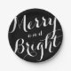 Merry and Bright Custom Colour Holiday Paper Plates by Orabella Prints. Can be completely customised with desired colours for both text and background. Shown: black and white