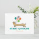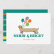 Bring joy to the holidays with this playful “Merry & Bright” Christmas card featuring an adorable dachshund wearing an orange scarf and holding colourful balloons. The cheerful design is set on a crisp white background with bold teal and orange typography, and the back features matching colourful stripes for a modern, festive look. Personalise with your family name and year for the perfect greeting to send to dog lovers, pet owners, and friends.