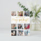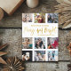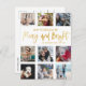 Modern and simple Christmas greetings card. Merry and bright text is in faux gold foil, with 9 photo placement template. Customise with your unique information.