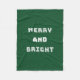 Merry and Bright, Green Christmas Art, Holiday Fleece Blanket