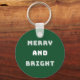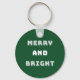 Merry and Bright, Green Christmas Art, Holiday Key Ring