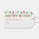 Add a festive finishing touch to your holiday presents with this Merry and Bright gift tag, featuring a playful string of colourful Christmas lights and bold modern lettering. Personalise with your family name and gift recipient. Perfect for vibrant holiday wrapping, these tags bring cheer and personality to every gift.