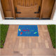Add a fun colourful holiday greeting to your front door, with this blue mat, that reads Merry and Bright, in colourful custom text. Graphics of colourful retro style Christmas lights, decorate the top and sides of the door mat.