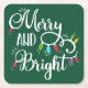 merry and bright holiday lights square paper coaster