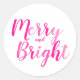 Merry and Bright Hot Pink Script Christmas Classic Round Sticker