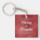 Merry and Bright Christmas design with text and floral decoration on grunge red background