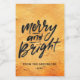 This Christmas Orange Holidays label features black handwritten text merry and bright and orange glitter background . The bright present for winter days.
