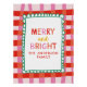 Merry and Bright Personalised Gingham Red & Pink Poster