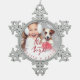 Celebrate the magical and festive holiday season with our holiday photo ornamnet. Our festive holiday design features a full photo layout "Merry & Bright" displayed in a stylish, modern brush script. Water colour snowflakes are scattered around. Personalise with name and photo. You can customise the text size, text colour, font and layout for your own personal design preference.