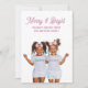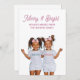 Merry & Bright this Christmas, with a charming twins holiday greeting featuring girls in matching merry and bright tees and wearing big smiles. The phrase Sets a festive tone, while the editable family name beneath adds a personal touch. Customise with your own family photo. A fun holiday card perfect for families with twins. Available as a printed card, digital download, or both, ideal for last minute sending.