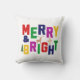 Merry and Bright Pine Tree Reindeer Snowman Cushion