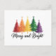 Merry And Bright Rainbow Christmas Tree Gay LGBTQ Holiday Postcard