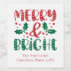 Merry and Bright Red and Green Holly Christmas Wine Label