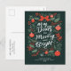 Merry and Bright Red Green Christmas Holiday Postcard
