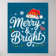 Merry And Bright Red Santa Hat Xmas Lights Holiday Poster