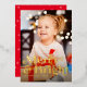 Send holiday cheer with this vertical photo Christmas card in a festive and shiny gold foil. The bold words "merry and bright" are in a trendy retro serif font and there's room for your custom text. The back is a merry and bright red with a snowy pattern. This simple one photo card is great for the family Christmas card, but it also works for couples, pets and anyone else sending merry wishes this year.