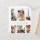 Budget Minimalist Elegant Gold Calligraphy 4 Photo Collage Merry Christmas Script Holiday Thin Card. This festive, simple, four (4) photo holiday card template features a pretty photo collage and says „Merry Christmas”! The „Merry Christmas” greeting text is written in a beautiful hand lettered swirly whimsical swash-tail font type in gold on white colour background. On the reverse side with greeting message template with a little heart doodle on white and one horizontal photo template. Pretty greeting card for your family and friends in Christmas Holiday season.