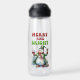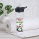 A funny and cheerful Christmas design showcases a jolly snowman dressed in a long green coat with a matching top hat, red scarf, and mittens. He holds a glass of red wine in one hand and white wine in the other. The festive red and green text reads, "Merry and bright." This design is available on a variety of products, making it a perfect gift for wine lovers.