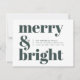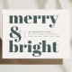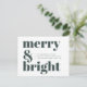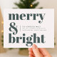 A stylish modern flat holiday greeting card with a bold retro typography quote "merry & bright" in dark forest green on a white background with a complementary feature colour on the reverse. The greeting, message and name can be easily customised to suit your needs. A trendy fun design to stand out this holiday season!