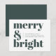 Merry and Bright | Stylish Forest Green Christmas Holiday Card