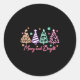 Merry And Bright Tree Neon Christmas Classic Round Sticker