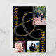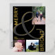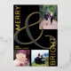 Merry And Bright Typography 3 Photo Black Gold Foil Holiday Card