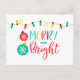 A fun loving design with a string of lights above handwritten typography words Merry and Bright by Ness Nordberg, complimented by some Christmas Ornaments with snowflake decorations. All artworks © Ness Nordberg. All rights reserved worldwide. The unauthorised reproduction or distribution of a copyrighted work is illegal.