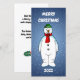 The merry snowman wearing a green hat and a red scarf is ready for Christmas.