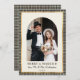 Merry and Married Arch Photo Black Gold Plaid Holiday Card