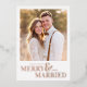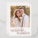 Celebrate your first Christmas together as newlyweds with this stunning foil “Merry & Married” photo design. The elegant metallic foil typography and border beautifully frame your favorite wedding or engagement photo, creating a timeless keepsake filled with warmth and love. With its romantic blush and ivory tones and customizable names and year, this modern yet classic design perfectly captures the joy of your happily ever after.