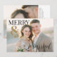 Celebrate your first holiday season as newlyweds with this elegant “Merry & Married” photo card. The design features a sophisticated mix of classic serif and modern script typography, with “Merry &” in bold black and gold lettering and “Married” in a graceful handwritten style. Perfect for showcasing a favorite wedding or engagement photo, this design offers a timeless way to share your joy and love with family and friends. Ideal for newly married couples sending their first holiday greetings together.