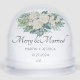 Introducing our "Merry & Married" Christmas Snow Globe, designed in a minimal and elegant style with modern script calligraphy. Featuring delicate white roses, sage green leaves, and charming wedding rings at the bottom, this snow globe can be personalised with the couple's names and wedding date. It's the perfect gift for friends and family to celebrate their special union during the holiday season. Ideal for newlyweds or anniversaries, this keepsake adds a meaningful and timeless touch to any festive display