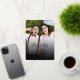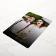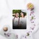 This modern and simple real foil pressed holiday/christmas wedding announcement card features the word 'Merry and Married' in a trendy calligraphy script overlaying a full bleed photo. The back of the card has a faux silver / platinum glitter image (with a colour filter applied) background with white snow dots pattern.