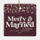 Christmas wedding announcement string light modern typography Merry and Married Christmas holiday wedding ornament. Burgundy purple.