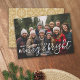 Vintage Farmhouse Gold Tile Pattern on the back. May your days be merry and bright is in a fun calligraphy font that is modern and trendy. You can change the back colour when you click on the customise link and choose a colour in the colour picker. Use one picture with the subject preferably in the middle. Make a unique and trendy Merry Christmas greeting with a trendy and joyful pattern on the back.