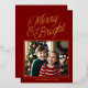 Merry & Bright Calligraphy Red Photo Foil Holiday Card