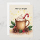 Send warm holiday wishes with this cosy Christmas card featuring a festive cup of cocoa topped with whipped cream, candy cane, and holly leaves. The text Merry & Bright adds cheerful charm — and you can easily edit or remove it to make your own personalised message. Perfect for spreading joy, pairing with gifts, or sharing a cosy note this holiday season.