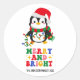 Merry & Bright Christmas Penguin Classic Round Sticker