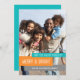 Merry and bright christmas customisable photo card in elegant and contemporary turquoise teal blue, grey, orange and white. Add your photo and custom text to this card to create a unique christmas greeting this holiday season for friends and family.