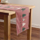 Add a touch of vintage charm and festive elegance to your holiday dining table with this Dusty Rose "Merry & Bright" Christmas Tree Table Runner. Featuring a lovely blush pink/dusty rose background adorned with a repeating pattern of classic and decorated Christmas trees in forest green, white, and gold, this runner beautifully captures the spirit of the season. The elegant script reads "Merry & Bright!" along the border, making it a perfect, unique centerpiece for your winter gatherings and Christmas dinners.