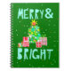 A bright Christmas tree adorned with colourful ornaments is surrounded by pink and red gifts just waiting to be opened. This design features the phrase "Merry & Bright." | Blanckslate | 141050D