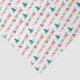 Christmas tissue paper featuring a pattern with the text "Merry & Bright" in a colourful, retro font and green Christmas trees.