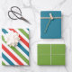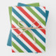 Merry & Bright Christmas wrapping paper sheets. Striped red, green, blue, & white.