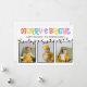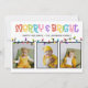 This festive photo Christmas card features a string of holiday lights, 3 photos of you and your family or just your kids on the front with the words, "Merry & Bright", and signed Happy Holidays with your family name. The fonts are happy and joyful in bright rainbow colours. It is so easy to make this card your own. Simply select Personalise this template, type in your family name and upload your favourite photos. It's super easy!