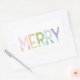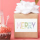 This holiday card design features a modern and playful layout, perfect for spreading seasonal cheer. The "Merry" greeting is displayed in colour block text at the top, complementing the warm, cheerful theme. The card is divided into three photo frames, allowing personalisation with family photos, making it perfect for sharing memories from throughout the year. Accents of soft beige, pastel green, vibrant purple, and blush pink give the design a cosy, festive aesthetic. Customisable text at the bottom offers space for a personalised message from your family.