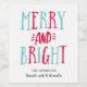 Customise these festive holiday wine labels with two lines of custom text to create a perfect hostess gift or personalised touch to your Christmas dinner spread. Bright and colourful Christmas design features "merry and bright" in vibrant red and aqua lettering.