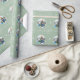 Modern personalised Christmas gift wrapping paper. The template is set up ready for you to add your favourite photo and your custom text. The design has a winter wreath with the hand-lettered wording "Merry and Bright" with stars and confetti dots. The colour palette is a contemporary eucalyptus green and silver. Please browse our store for matching and coordinating Christmas cards, gift wrapping and decor.