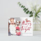 Celebrate the magical and festive holiday season with our holiday photo postcard. Our festive holiday design features our hand drawn dachshund dog wearing a festive red cosy knitted sweater. The dachshund dog is wearing antlers with a string of Christmas lights wrapped around the dog and in the dog's month. "Merry & Bright" displayed in a stylish, modern brush script. Personalise with family name and photo. The reverse side features the dachshound dog. Customised with your address, and personal message. All illustrations contained in this festive watercolour Christmas dachshund dog Christmas postcard are hand-drawn original artwork by Moodthology. You can customise the text size, text colour, font and layout for your own personal design preference.