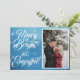 Merry Bright Engaged Blue Snowflake Bokeh Photo Holiday Card