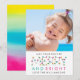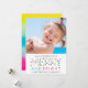 Send some holiday cheer with this Merry & Bright Christmas photo card highlighted by Christmas tree lights. Just upload your photo and add your name. The backside features bold and bright watercolor stripes in yellow, green, blue and pink. Fun, colourful and cheerful, it's sure to make friends and family smile.